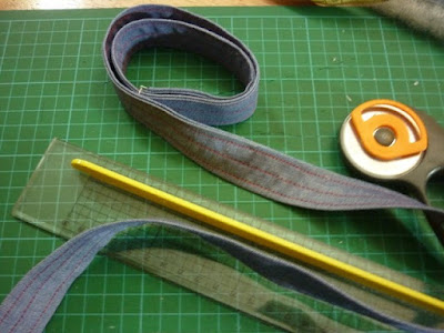- Ahora toca preparar la tira para colgarlo: Es a gusto de cada quien. De todas maneras, les doy las las medidas por si alguna quiere usarlas: 1 mt de largo por 12cm de ancho. ¿Por qué tan ancha? porque me gusta doblarla cuatro veces para que quede resistente.